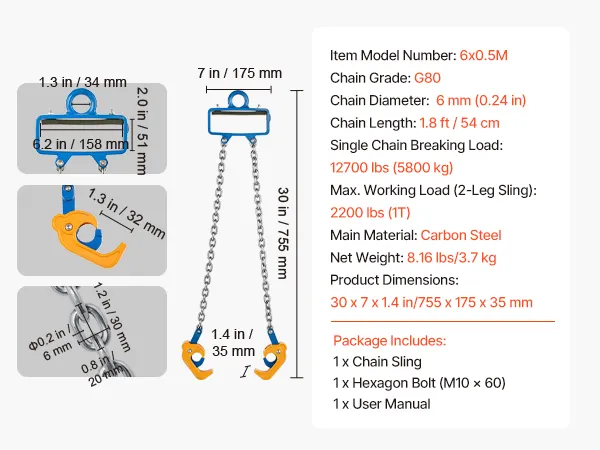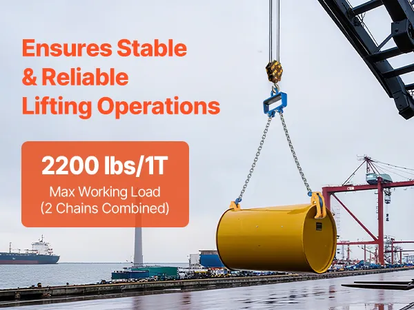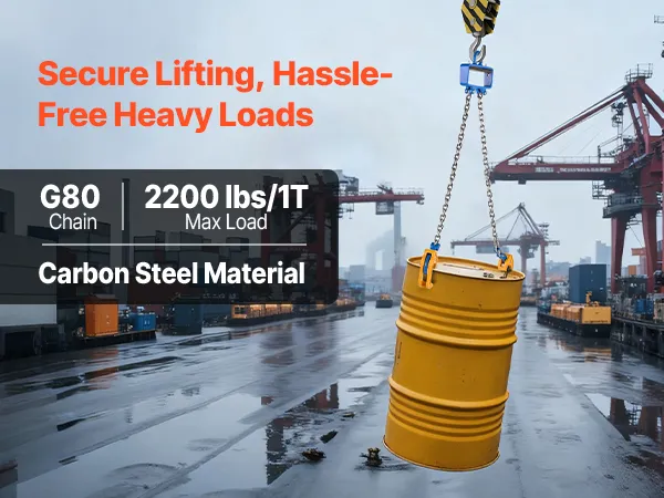 Hoge draagkracht van 1 T: Met een maximale werklast van 1 T biedt deze robuuste vatenhijsketting betrouwbaar hefvermogen voor industriële en bouwtaken.