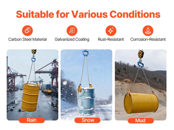 Duurzame en roestwerende coating: deze vatenhijsketting is gemaakt van hoogwaardig koolstofstaal met een roestwerende coating en is ontworpen voor duurzaamheid, bestand tegen zware werkomgevingen en langdurig gebruik.