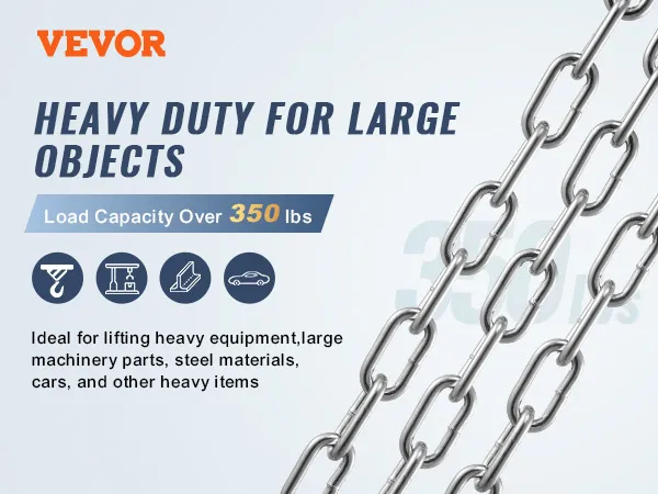 Hoog draagvermogen: onze robuuste stalen ketting is ontworpen voor verschillende ophangtaken met een hoog draagvermogen en kan tot 158 kg dragen. Of het nu gaat om zwaar materieel, mechanische onderdelen, stalen materialen of zelfs uw auto, met deze ketting is alles gemakkelijk en veilig en kunt u met een gerust hart alle ophang- en ophangwerkzaamheden uitvoeren.