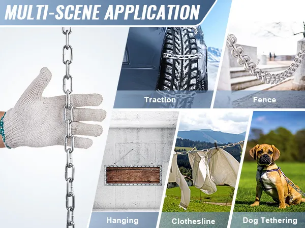 Deze gegalvaniseerde spiraalketting is ideaal voor allerlei taken: of het nu gaat om het slepen, ophangen, drogen van kleding of het vastzetten van huisdieren, hij klaart de klus. Het is een geweldige keuze voor buitenavonturen, thuisprojecten en meer.