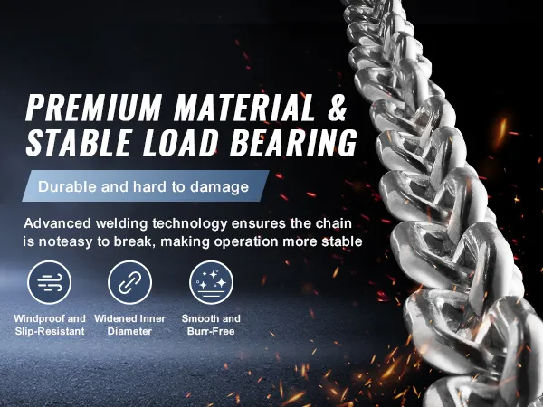 Deze ketting van hoogwaardige materialen wordt versterkt met behulp van moderne lasprocessen. De antislip- en winddichte eigenschappen en de grotere binnendiameter zorgen ervoor dat hij stabiel blijft tijdens gebruik. Het gladde, braamvrije oppervlak maakt het gebruik comfortabel.