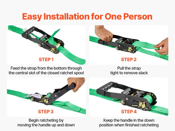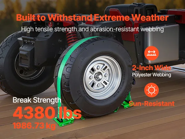 Veelzijdige bevestigingsset: onze spanband met ratel wordt geleverd als wielkegset met een 2 inch (50,8 mm) brede en 120 inch (2430 mm) lange band. Hij past gemakkelijk op diverse voertuigen – ATV's, UTV's en aanhangers.