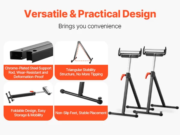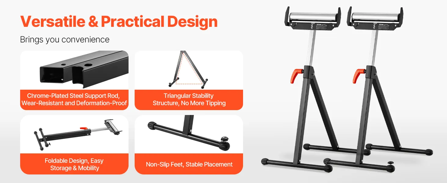 Rock-Solid Construction: Crafted from chrome-plated steel, this roller stand is built to last. It supports up to 250 lbs, making it ideal for easily handling heavy-duty materials during cutting and other tasks. Let’s experience smooth and secure cutting!