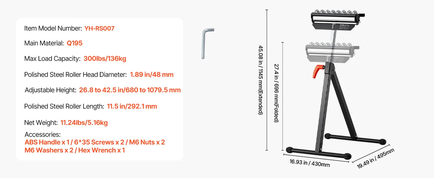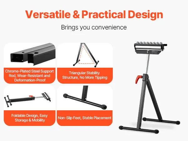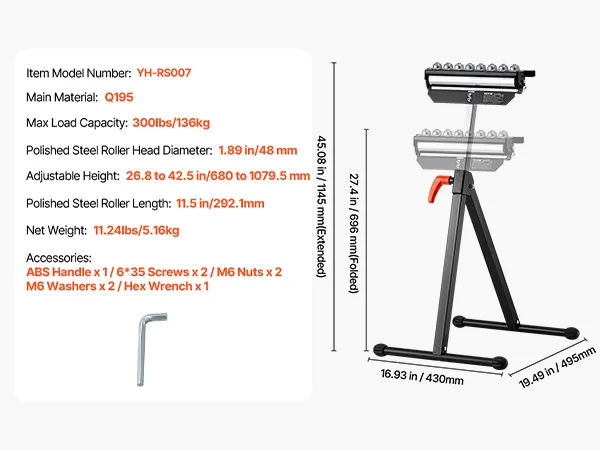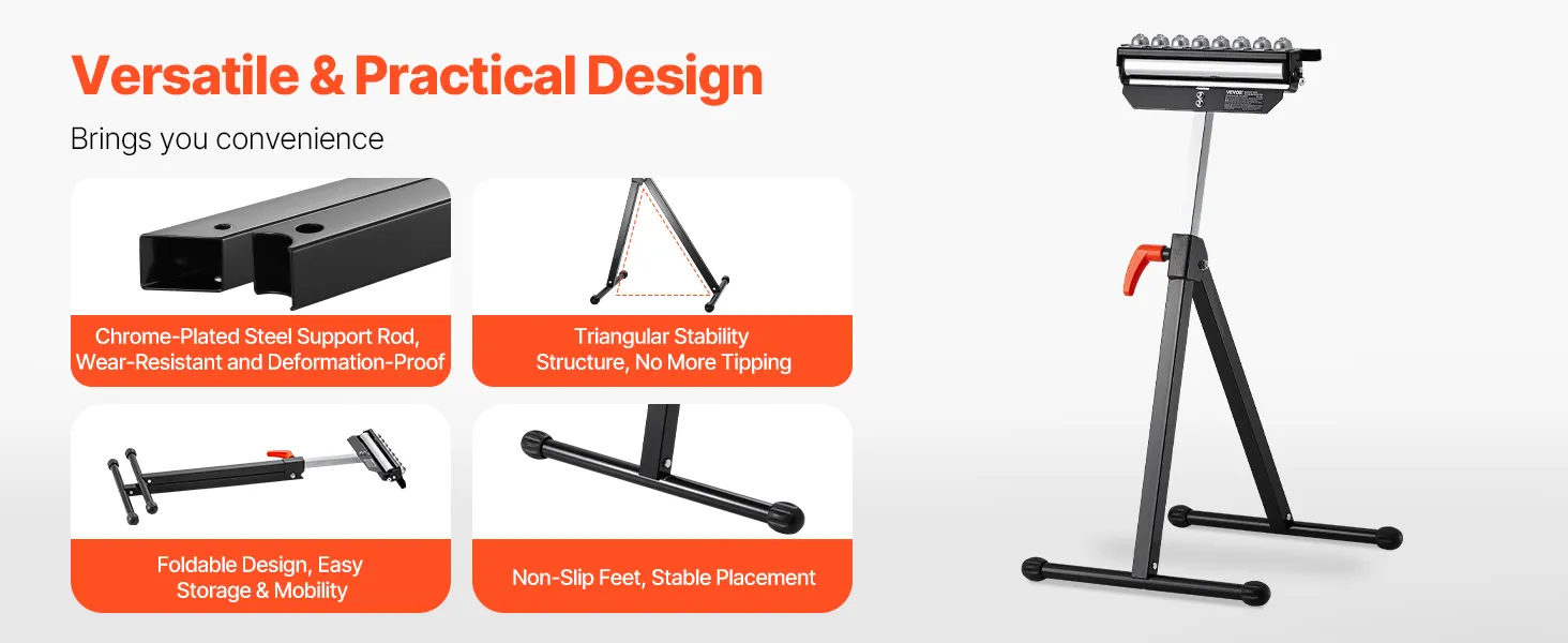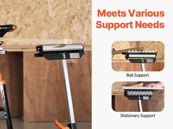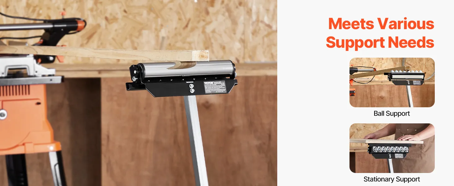 3-in-1 rolkop: Dit ontwerp omvat een gepolijste stalen rolkop van 292,1 mm en multidirectionele kogelrollen die zorgen voor een soepel materiaaltransport en tegelijkertijd veelzijdige ondersteuningsopties bieden. Dankzij deze functionaliteit kunnen gebruikers zich moeiteloos aanpassen aan verschillende projectvereisten, waardoor de algehele efficiëntie toeneemt.
