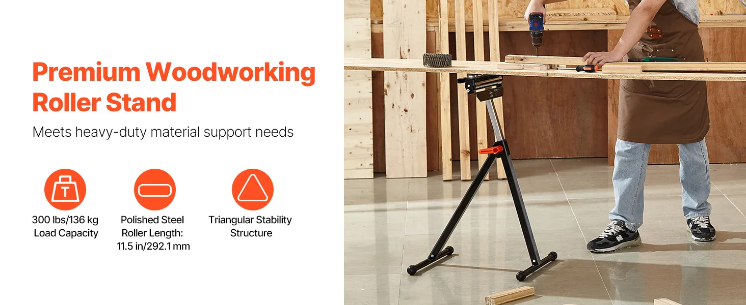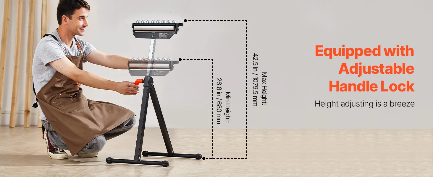 VEVOR 3-in-1 rolstatief, 136 kg, 68-108 cm in hoogte verstelbaar, rolstatief met 29,2 cm gepolijste multidirectionele rolkop, voor uitvoer van tafelzaag, houtbewerkingsverlengstuk
