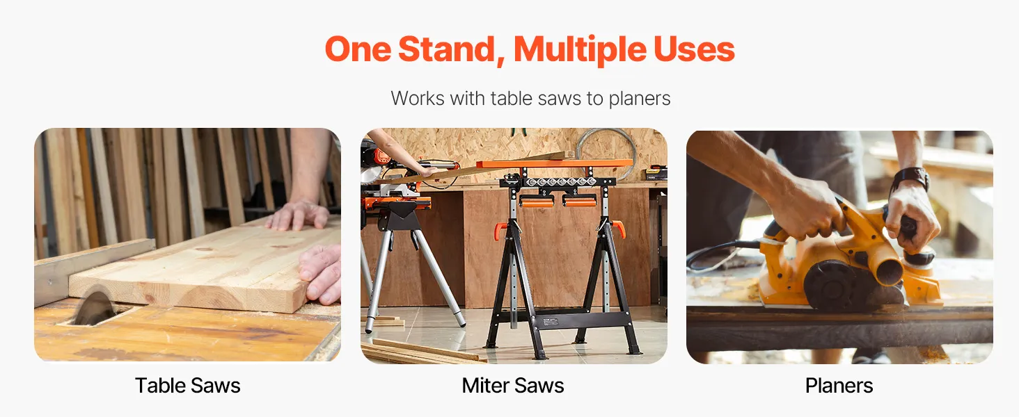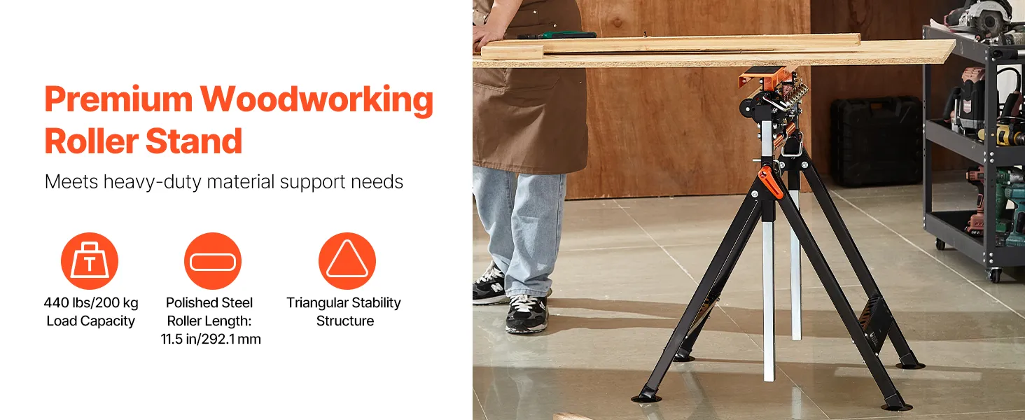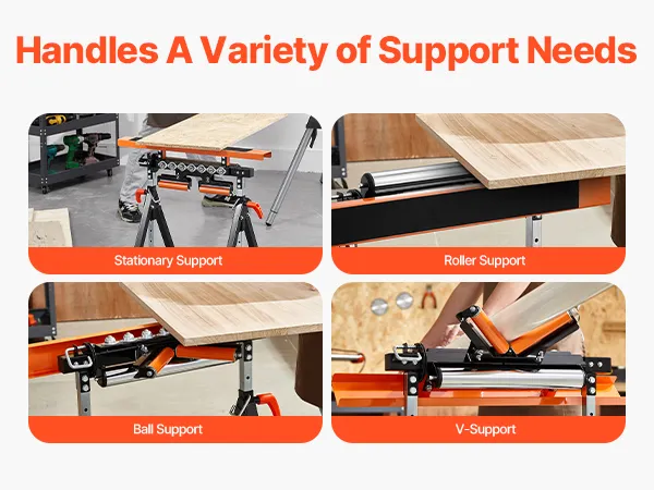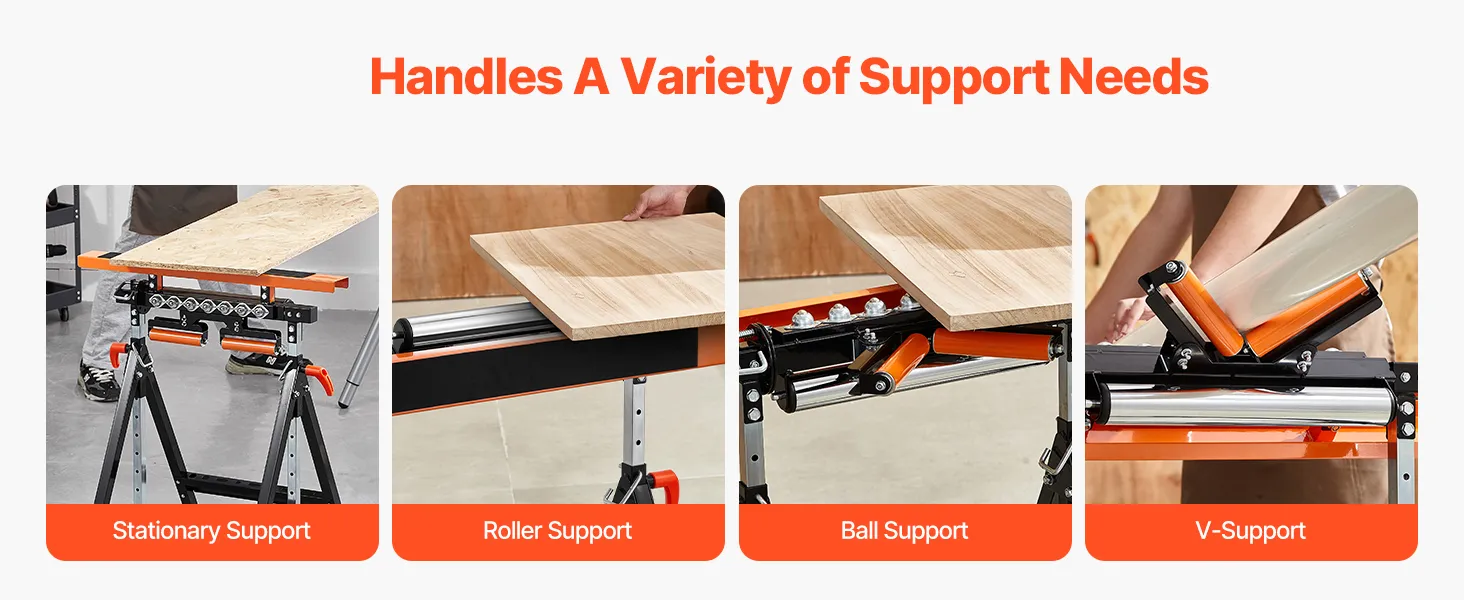 VEVOR 4-in-1 rolstatief 200 kg, rolstatief 84-127 cm in hoogte verstelbaar, werkstatief met rek en gepolijste multidirectionele rolkop, voor tafelzaagaansluiting, verlengstuk