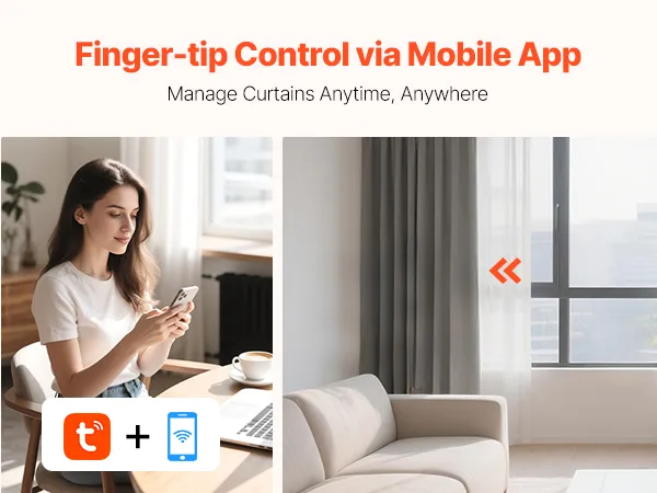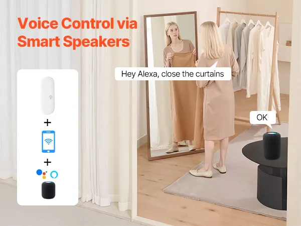 3 bedieningsopties: Bedien je slimme gordijnopener via afstandsbediening, app of stem. Compatibel met Amazon Alexa en Google Assistant, kun je je gordijnen altijd en overal openen of sluiten, of je nu thuis ontspant of onderweg bent.