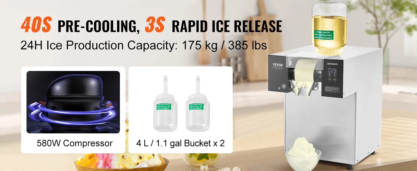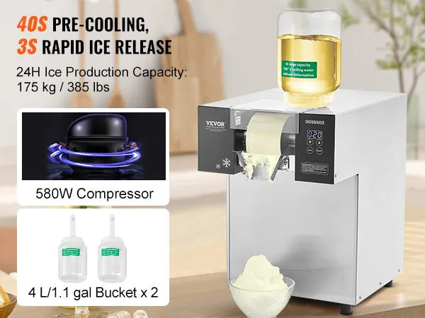 Een krachtige motor van 580 W zorgt voor een stabiele werking en snelle koeling binnen 40 seconden. Na het voorkoelen giet je eenvoudig de bereide ingrediënten erbij en het milkshake-ijs is in slechts 3 seconden klaar.