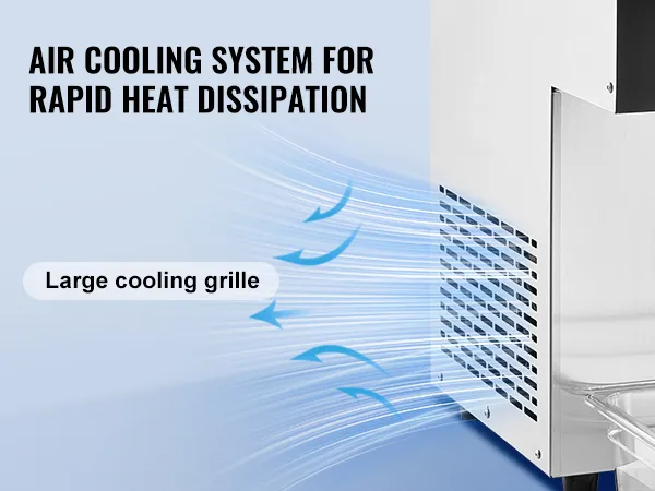 Efficiënte en continue ijsproductie: de sneeuwvlokijsmachine beschikt over een krachtig, stabiel luchtkoelsysteem dat een snelle koeling in 40 seconden bereikt en ijs produceert in slechts 3 seconden na het voorkoelen. Hij kan ongeveer 180 kg ijs per dag produceren en is ideaal voor de productie van verschillende dranken, zoals suikerhoudende dranken, alcoholische dranken met een alcoholgehalte van minder dan 10°, vruchtensapdranken en melk.