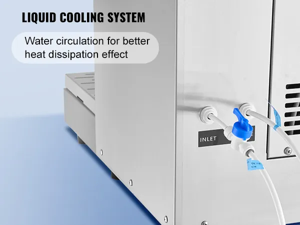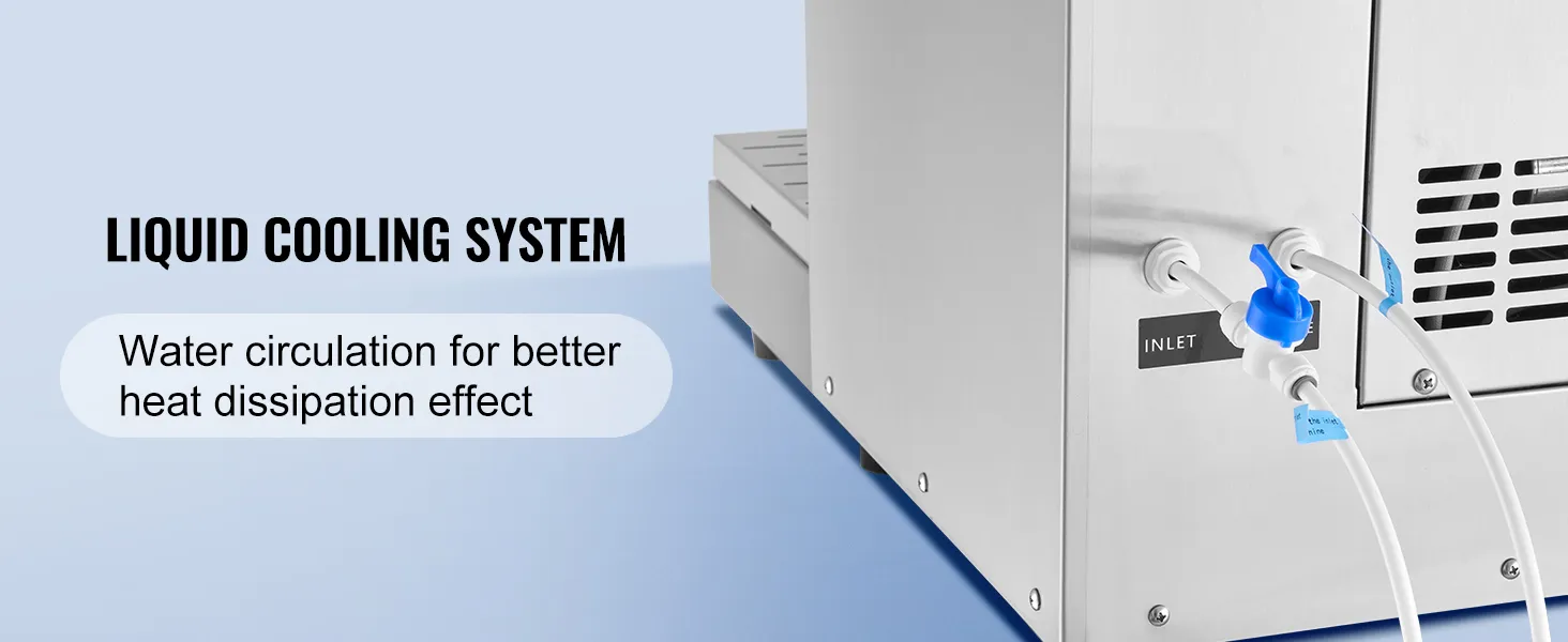 The liquid-cooled refrigeration system is suitable for both indoor and outdoor environments, unrestricted by ambient conditions. During actual use, continuous additional connection to municipal tap water is required for machine cooling, enabling faster and more efficient heat dissipation.