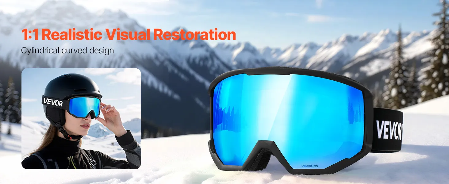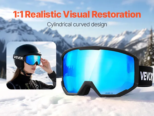 De geavanceerde cilindrische lens van de skibril biedt een vervormingsvrij 1:1-zicht, wat zorgt voor een natuurlijk zicht op de piste. De lichte kromming vermindert optische vervorming, waardoor de bril ideaal is voor professionele skiërs die het terrein nauwkeurig moeten inschatten.