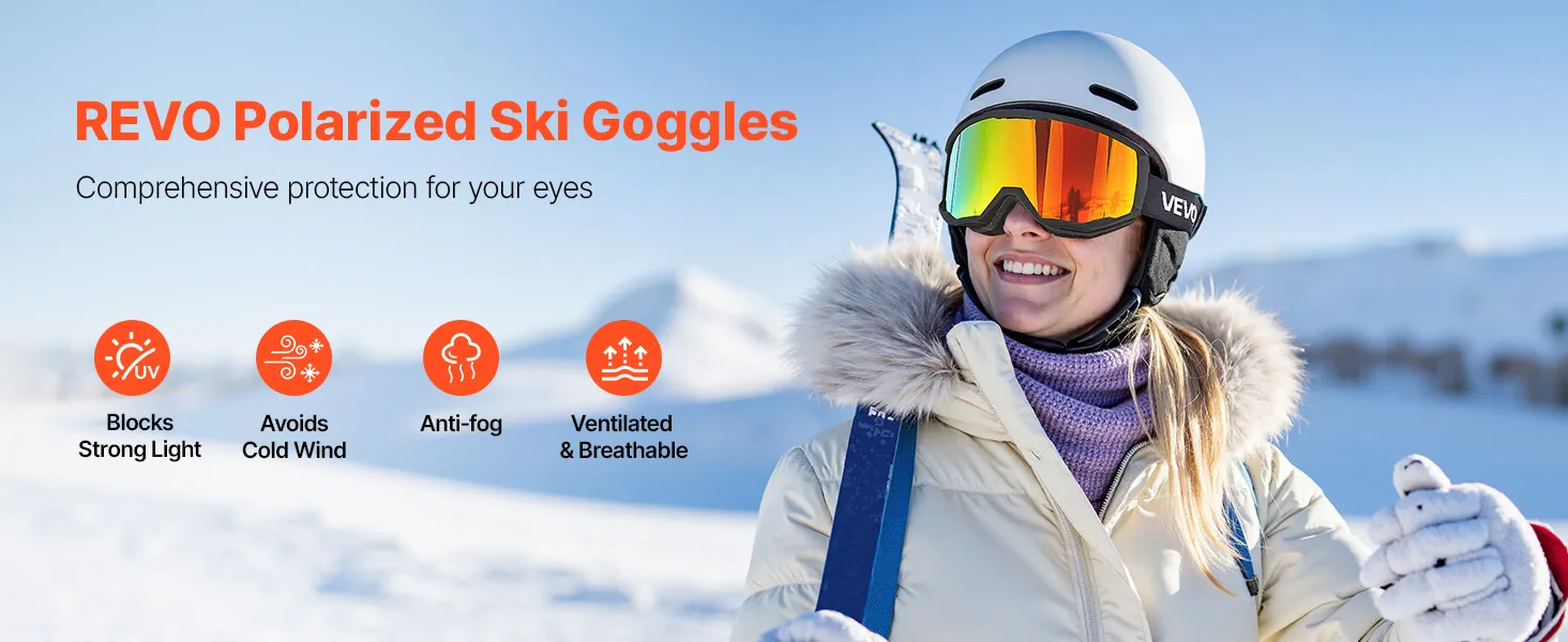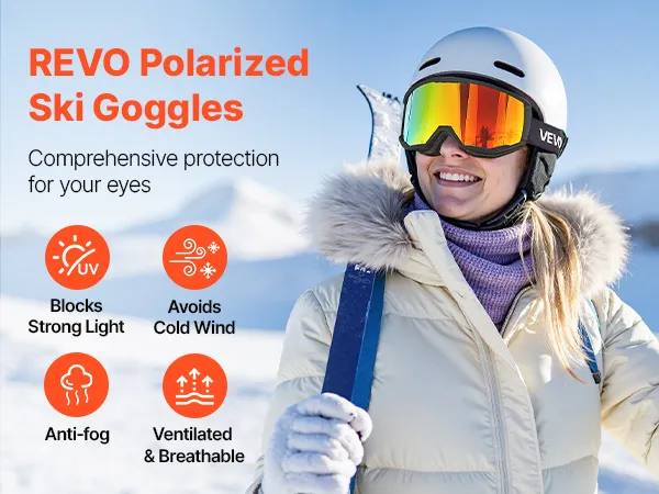 Deze Revo skibril blokkeert fel zonlicht en vermindert schittering in de sneeuw om sneeuwblindheid te voorkomen. Hij beschermt je tegen koude wind, zorgt voor een condensvrij zicht en laat frisse lucht binnen, zodat je zorgeloos van elke afdaling kunt genieten.