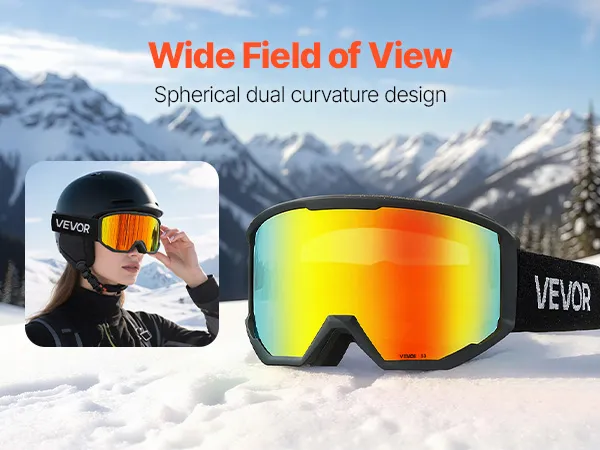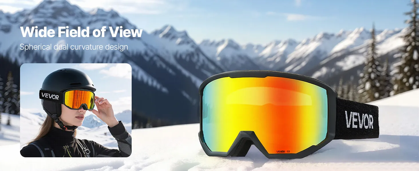 De geavanceerde cilindrische lens van de sneeuwbril biedt een vervormingsvrij 1:1-zicht, wat een natuurlijk zicht op de piste mogelijk maakt. De lichte kromming vermindert optische vervorming, waardoor ze ideaal zijn voor professionele skiërs die het terrein nauwkeurig moeten inschatten.