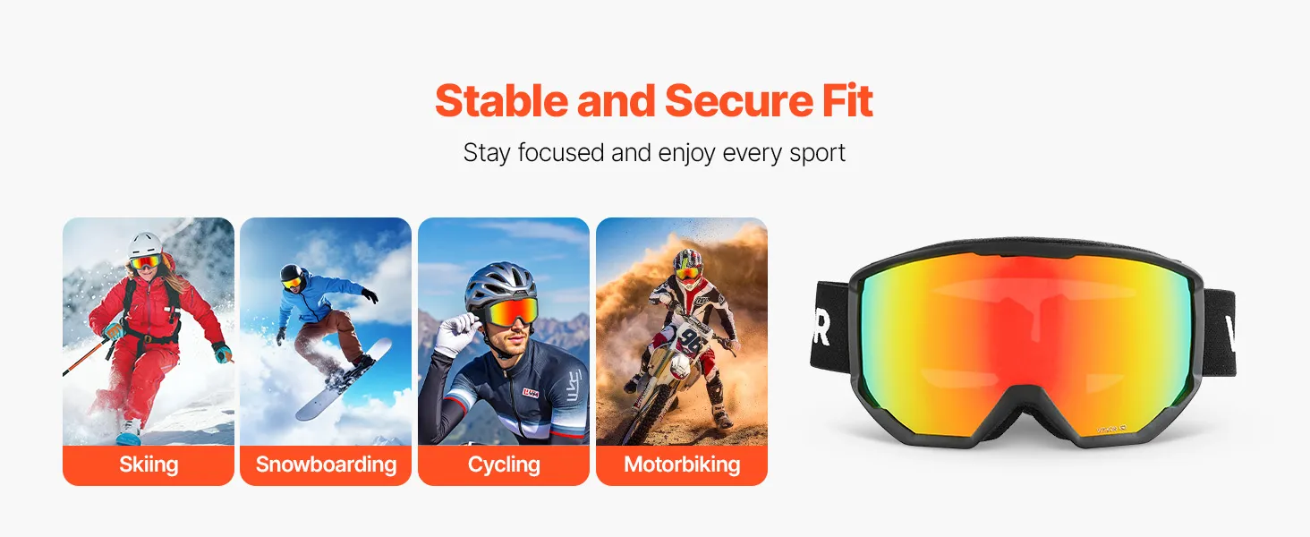 Blokkeert fel licht: Deze skibril blokkeert schittering in de sneeuw, waardoor uw ogen minder snel vermoeid raken en u helder zicht hebt. De comfortabele, condensvrije pasvorm blijft helder bij zonnig en bewolkt weer, zodat u comfortabel en veilig kunt skiën.