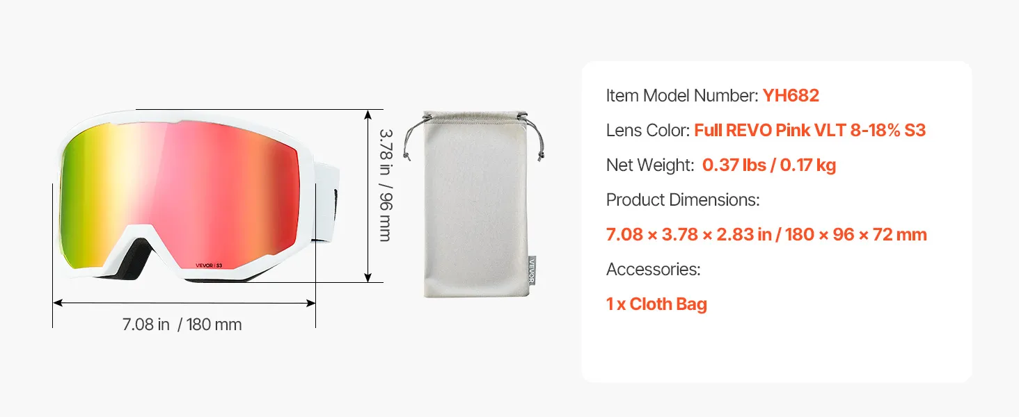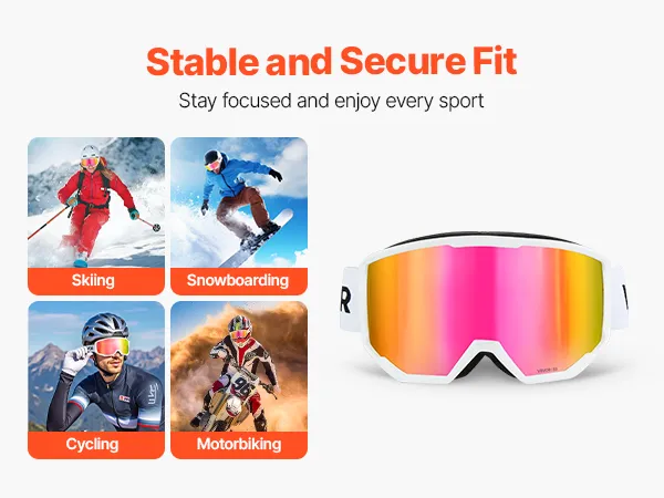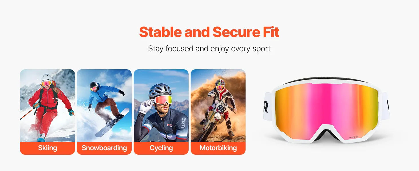Blokkeert fel licht: Deze skibril blokkeert schittering in de sneeuw, waardoor uw ogen minder snel vermoeid raken en u helder zicht hebt. De comfortabele, condensvrije pasvorm blijft helder bij zonnig en bewolkt weer, zodat u comfortabel en veilig kunt skiën.