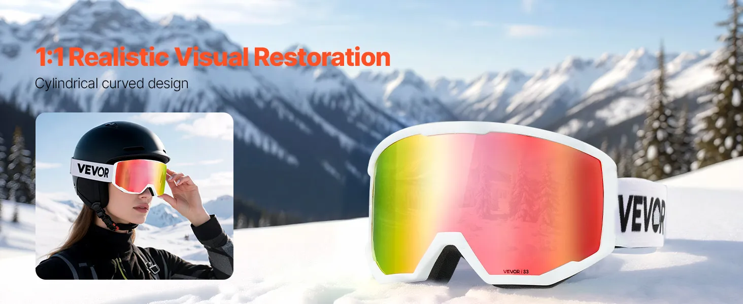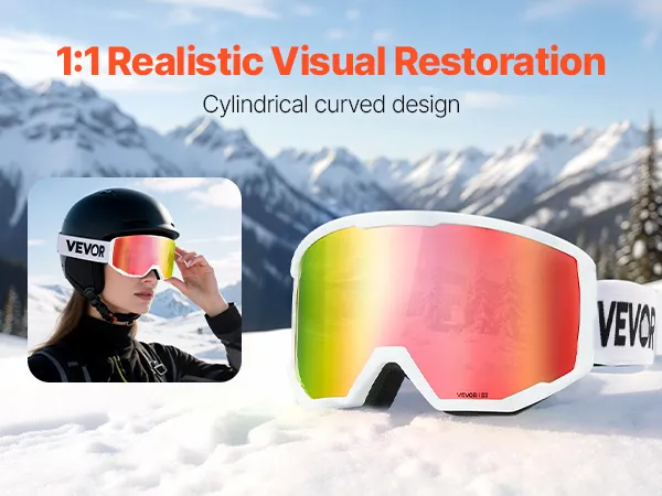 De geavanceerde cilindrische lens van de sneeuwbril biedt een vervormingsvrij 1:1-zicht, wat een natuurlijk zicht op de piste mogelijk maakt. De lichte kromming vermindert optische vervorming, waardoor ze ideaal zijn voor professionele skiërs die het terrein nauwkeurig moeten inschatten.