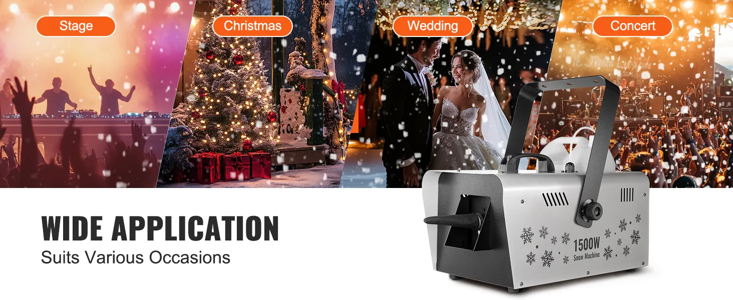 Ideaal voor huisdecoratie, kerstfeesten, parades, verjaardagsfeestjes, vakantie-evenementen, DJ-sets en podiumoptredens. Deze sneeuwmachine zorgt voor een boeiend sneeuwvaleffect dat de sfeer verbetert en indruk maakt op iedereen.