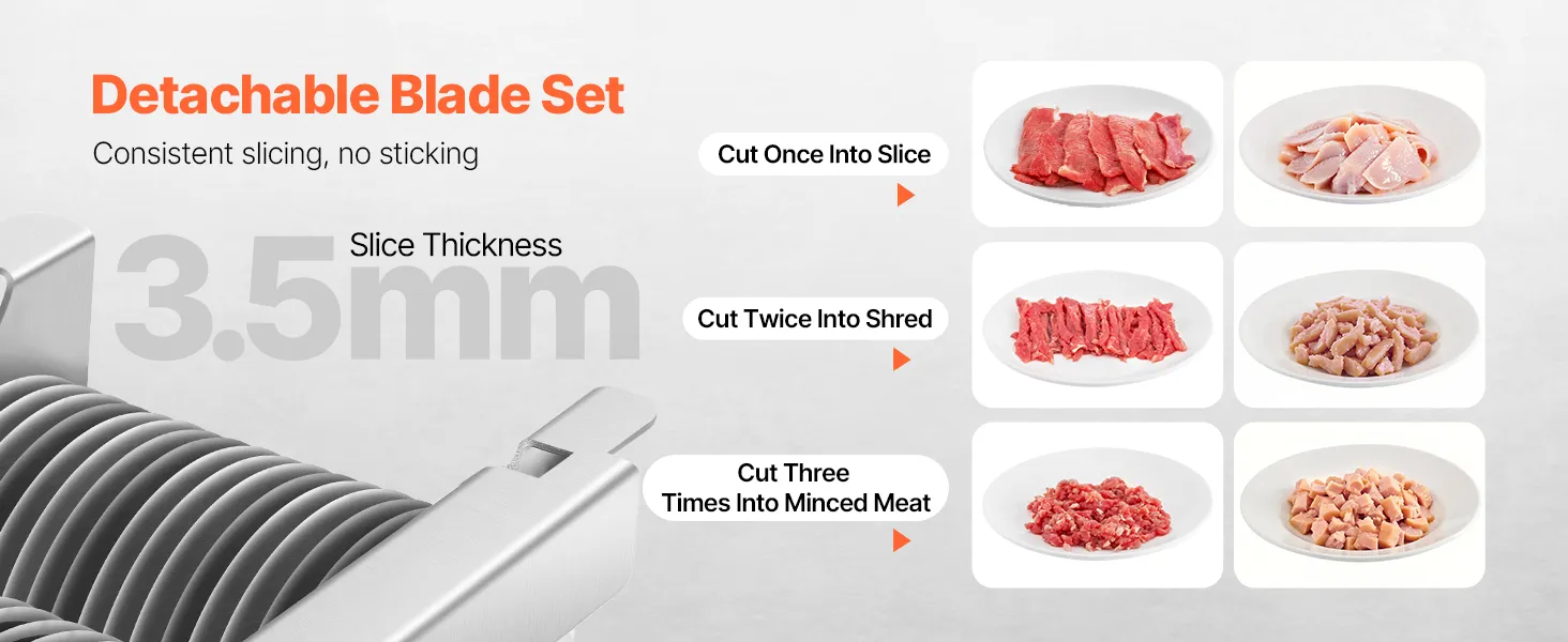 Stable and Long-lasting: Crafted with high-quality stainless steel, this meat cutting machine resists rust and lasts longer. The anti-slip rubber base helps keep it steady, making it a go-to tool for small businesses, farmer's markets, restaurants, home kitchens, and more.