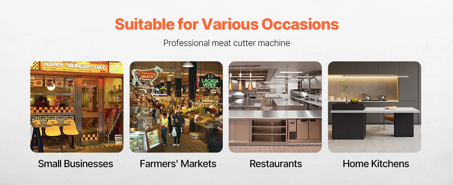 Stable and Long-lasting: Crafted with high-quality stainless steel, this meat cutting machine resists rust and lasts longer. The anti-slip rubber base helps keep it steady, making it a go-to tool for small businesses, farmer's markets, restaurants, home kitchens, and more.