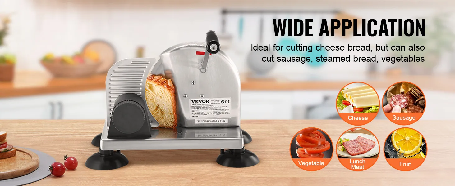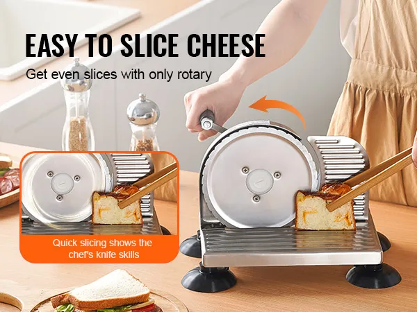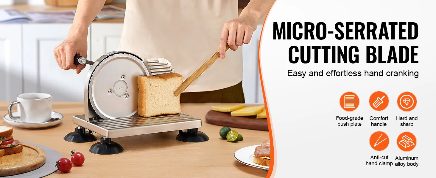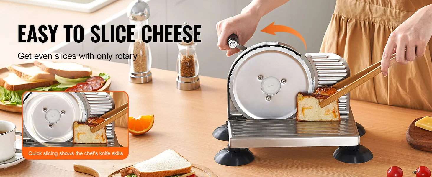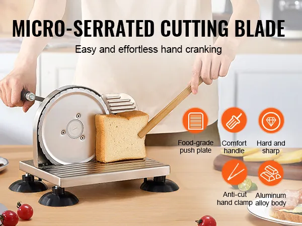 Deze broodsnijder voor in de keuken is een geweldig hulpmiddel voor mensen die efficiënt en gemakkelijk willen snijden zonder veel moeite. De VEVOR handmatige broodsnijder maakt het zo gemakkelijk om snel kaas en brood te snijden. Deze scherpe snijbladen zijn sterk en scherp genoeg om snel te scheuren. U kunt de handgreep eenvoudig draaien om door verschillende soorten voedsel te snijden. Gemakkelijk te gebruiken sneden zijn verzekerd, waardoor uw gesneden items er gelijkmatiger en esthetisch aantrekkelijker uitzien. Deze snijder is ideaal voor degenen die efficiënte manieren willen om hun tegeltaken sneller en leuker te maken.