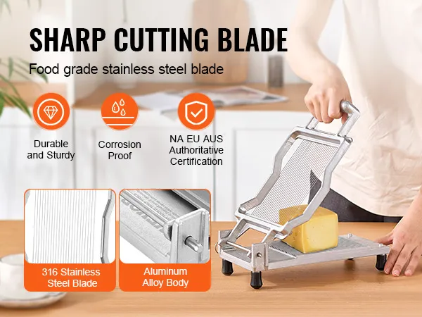 Durable Materials: Our cheese slicer is made from high-strength aluminum alloy, lightweight, corrosion-resistant, and rustproof. The cutting blades are made of marine-grade corrosion-resistant 316 stainless steel, enhancing durability and ensuring they do not deform or crack during use.