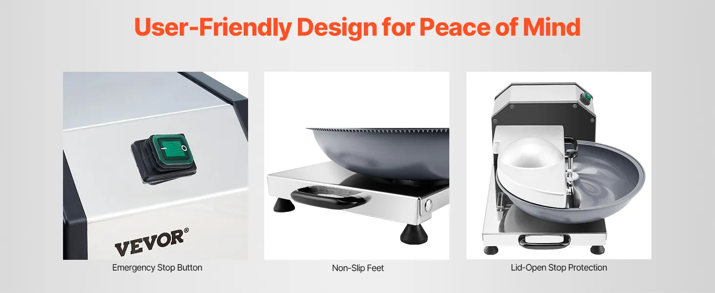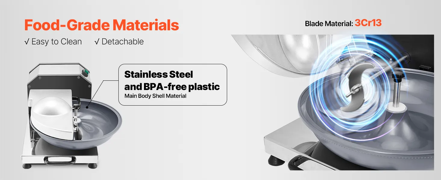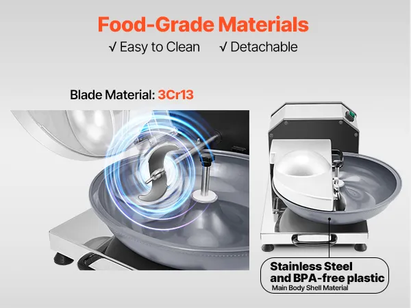 Food-Grade Material: All parts in contact with food are made from food-grade stainless steel. The blades and accessories are detachable and dishwasher safe, making cleanup hassle-free.