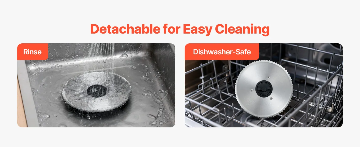Verwijderbare schuifrail voor grondige reiniging. Voorkomt bacteriegroei en verdubbelt de reinigingsefficiëntie.