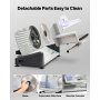 Easy to Disassemble and Clean: To enhance convenience, the carriage tray, blade, food pusher, and slider extension can be easily disassembled for thorough cleaning, making maintenance quick and effortless with this deli slicer