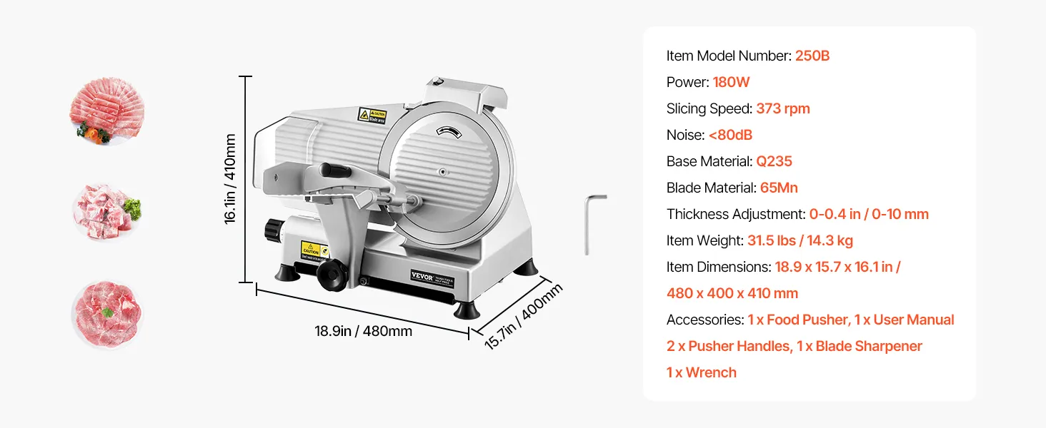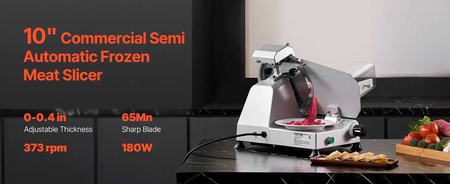 Take the hassle out of meal prep with our frozen meat slicer. Powered by a high-efficiency 180W motors and spinning at a smooth 373 RPM, it quickly slices through meat, cheese, bread, and veggies, giving you back your day.