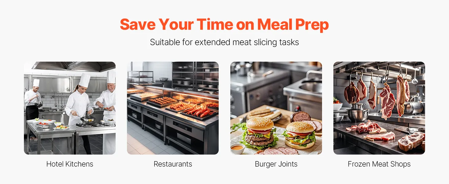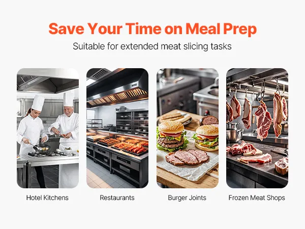 Our deli meat slicer adapts to a variety of countertops, serving smoothly in hotel kitchens, restaurants, burger joints, and frozen meat shops.