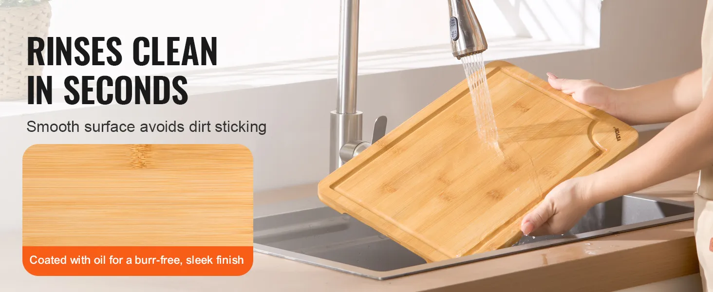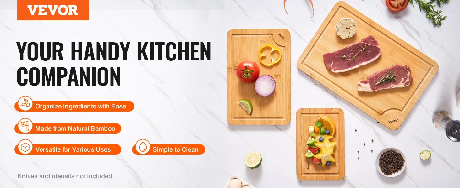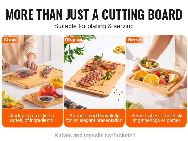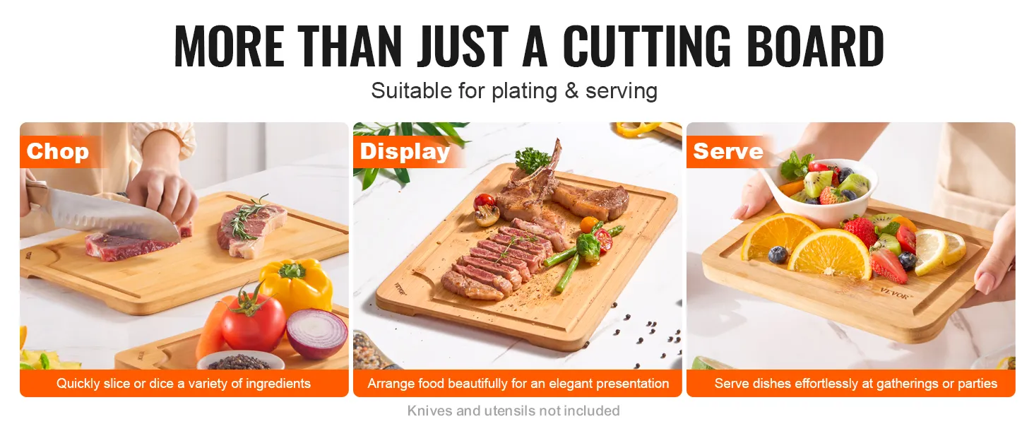 VEVOR Snijplank Keukenplank Serveerplank 3-delig met voedselveilige olie- en sapgroef, duurzame snijplank met geïntegreerde handgreep, geschikt voor het presenteren, snijden en serveren