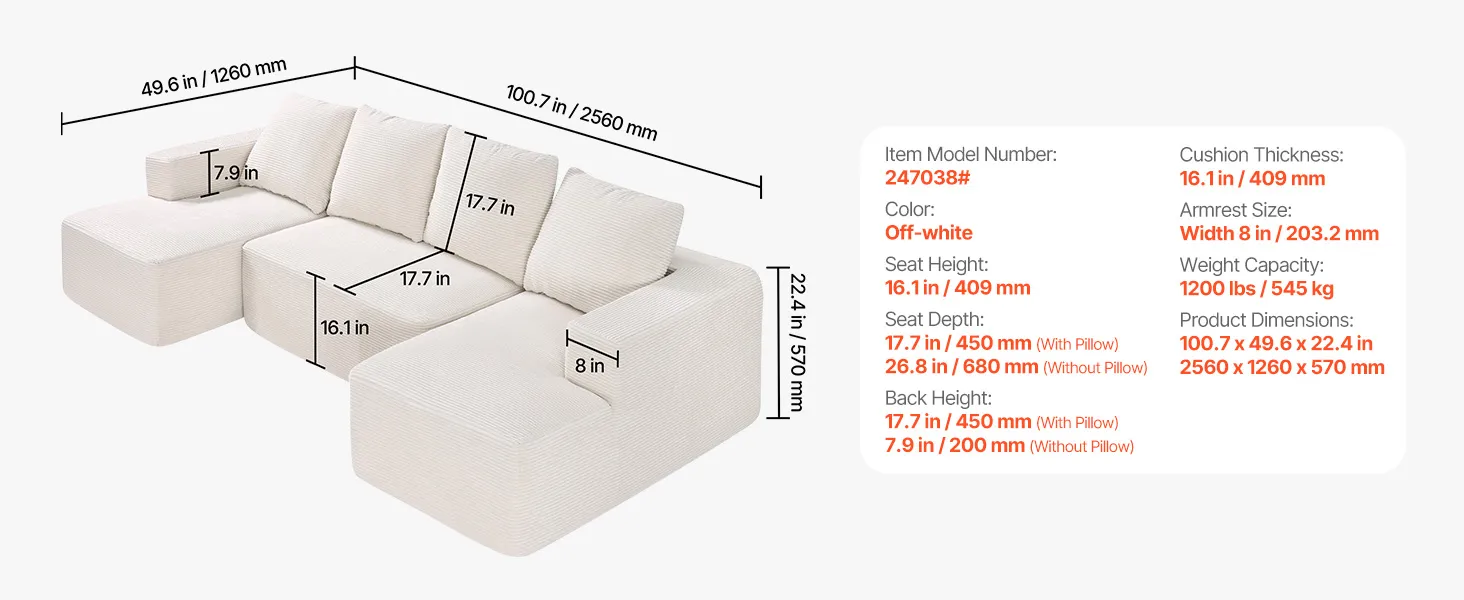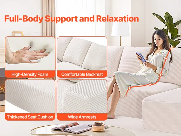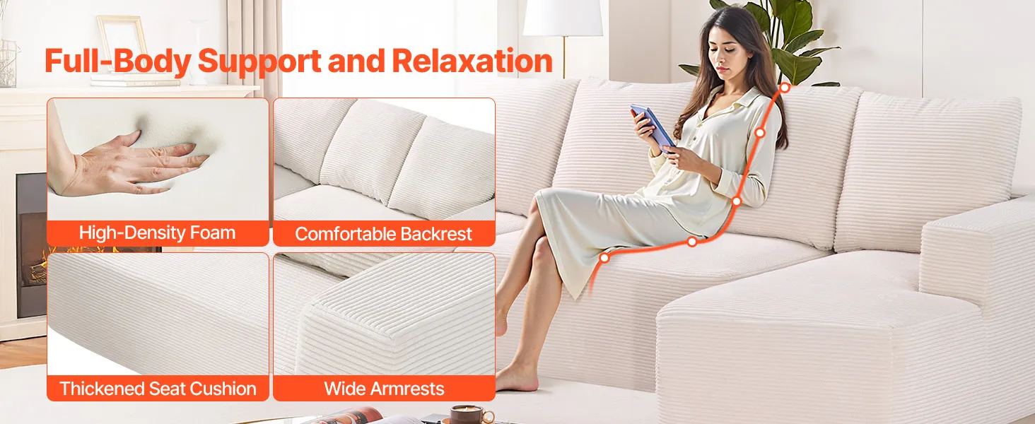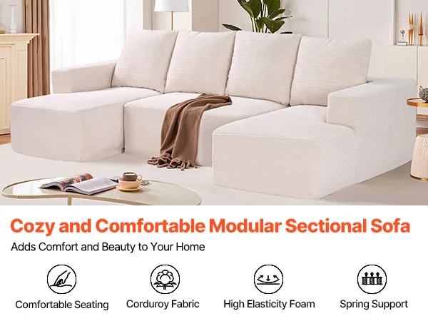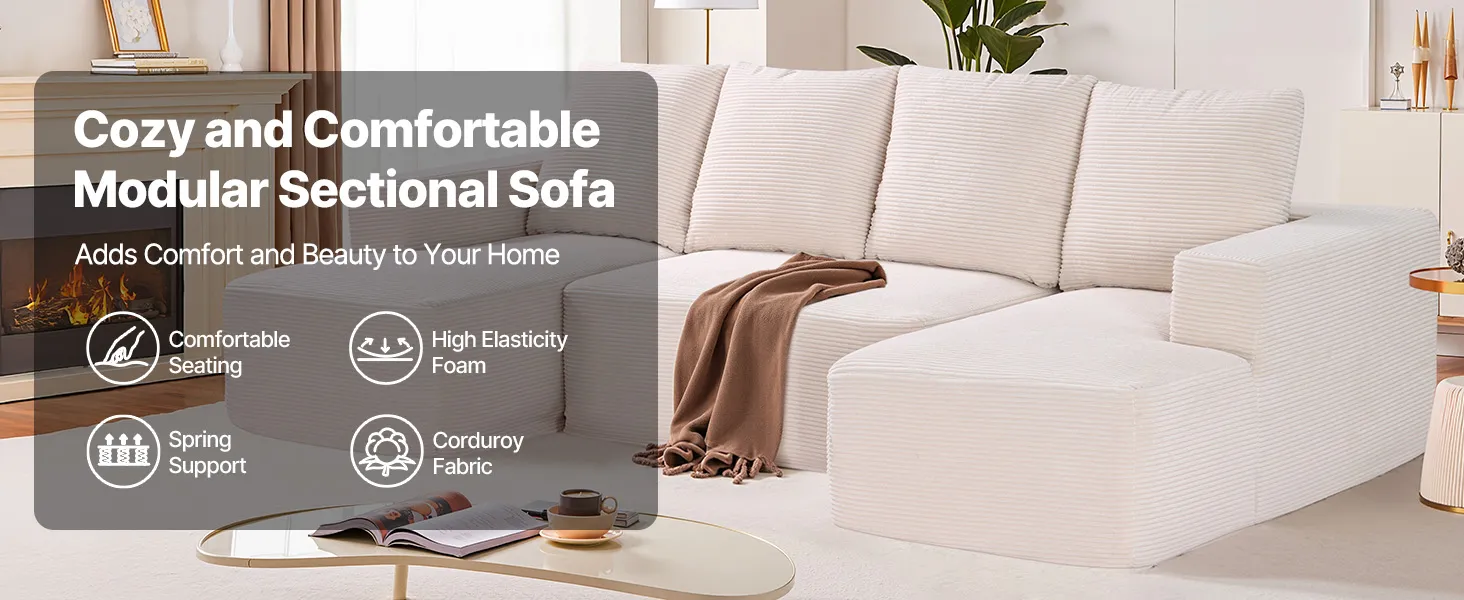 Designed to fit your home and style, this versatile modular sectional sofa offers comfort and a modern look. Made with high-elastic foam and spring support, it’s both durable and comfy. The breathable, easy-to-care-for corduroy fabric keeps your living space stylish and low-maintenance.