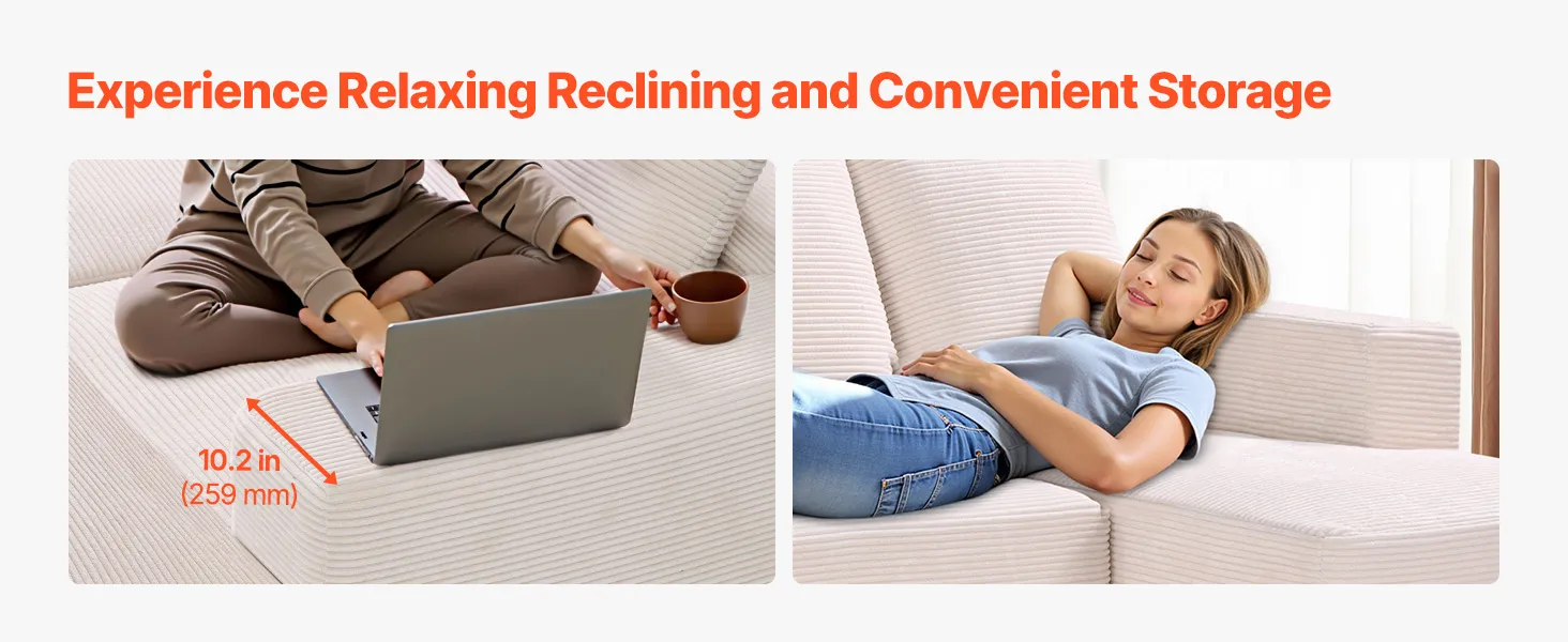 Soft and Comfortable Seating: This modular sectional sofa features high-elastic foam and spring-packed support, offering both a soft, plush feel and long-lasting durability.