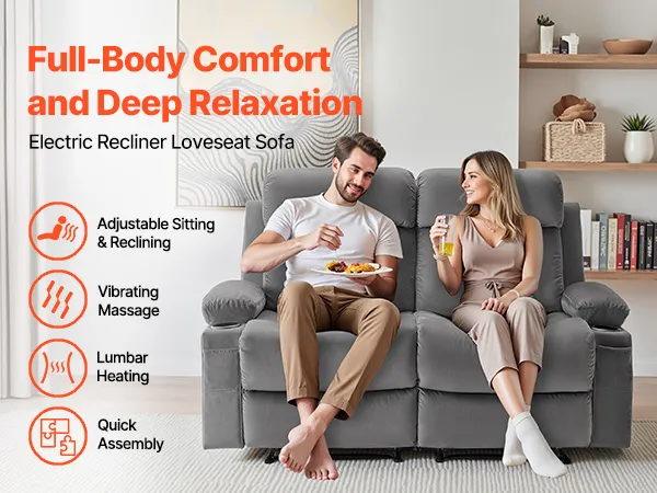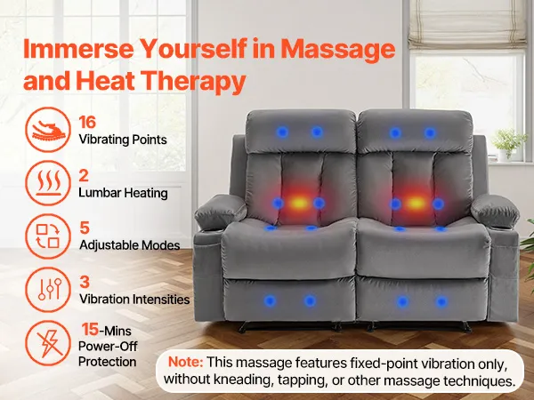 Kom thuis en ontspan in deze loveseat! Druk eenvoudig op de bijbehorende knop om de gewenste ligpositie te kiezen. Selecteer vervolgens de ideale vibratiestand voor een volledige lichaamsmassage. De lendensteunverwarming bevordert de bloedsomloop en zorgt voor ultiem comfort en diepere ontspanning.