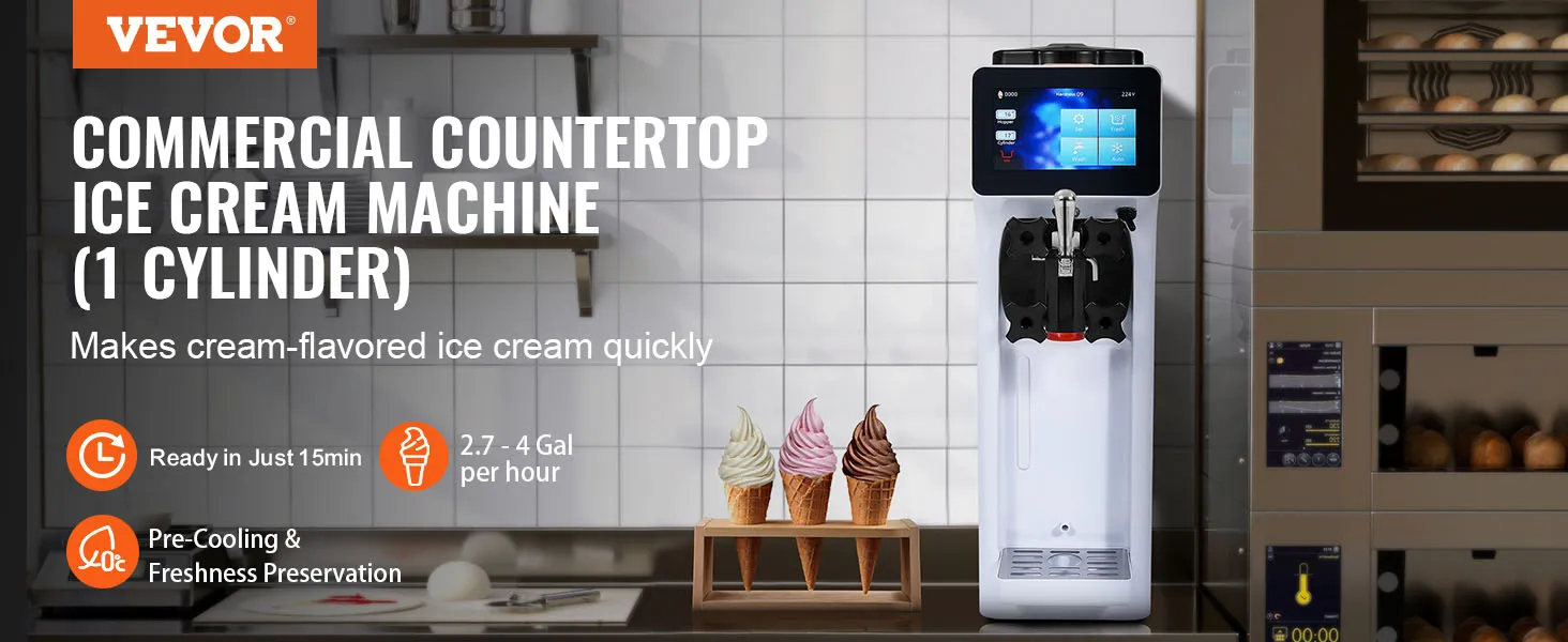 Veelzijdige toepassing: deze veelzijdige softijsmachine is ideaal voor het maken van een breed scala aan lekkernijen op basis van ijs, waaronder wafels, wafels en cakes. Het is een perfecte aanvulling op ijssalons, cafés, drankbars en kleine eetkraampjes en zal elke commerciële omgeving verfraaien.