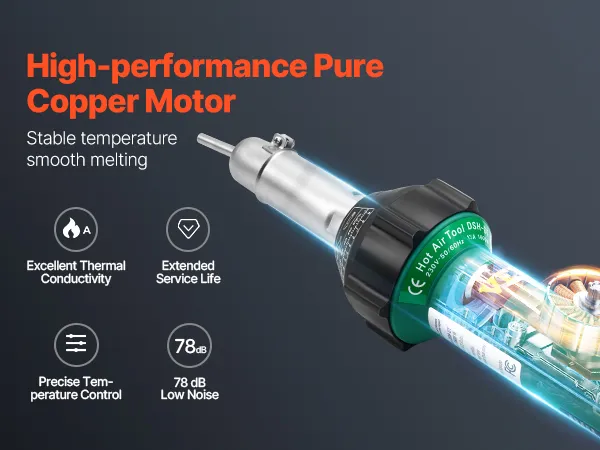 Lange levensduur: de mondstukken en hulzen van dit hetelucht-kunststoflasapparaat zijn gemaakt van hittebestendig roestvrij staal. Het is corrosie- en slijtvast en blijft zelfs bij intensief gebruik robuust en stabiel zonder te zweten.