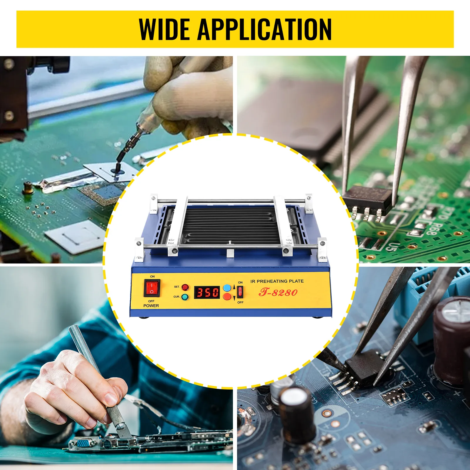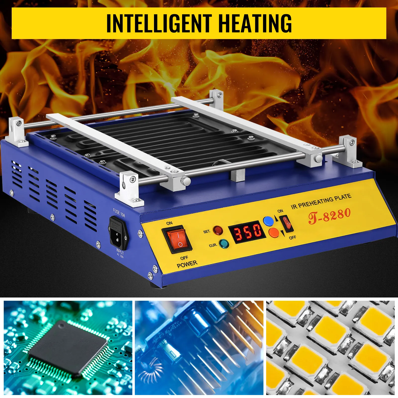 De T-8280 selecteert de infraroodcomponent om warmte af te geven voor onafhankelijke verkenning, en gebruikt geavanceerde intelligente PID-temperatuur om de temperatuur nauwkeurig te regelen. Het is geschikt voor het verwarmen van lood-/loodvrije printplaten en componenten, speciaal voor BGA, een SMD-elementprintplaat.