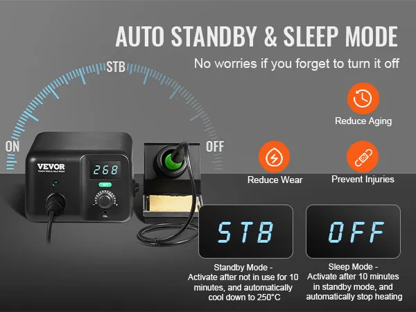 Auto standby and sleep modes ensure the safety of your soldering work! Thoughtful features not only protect the heating element and extend the station's lifespan but also help prevent accidental burns, providing a safer and more efficient soldering experience.
