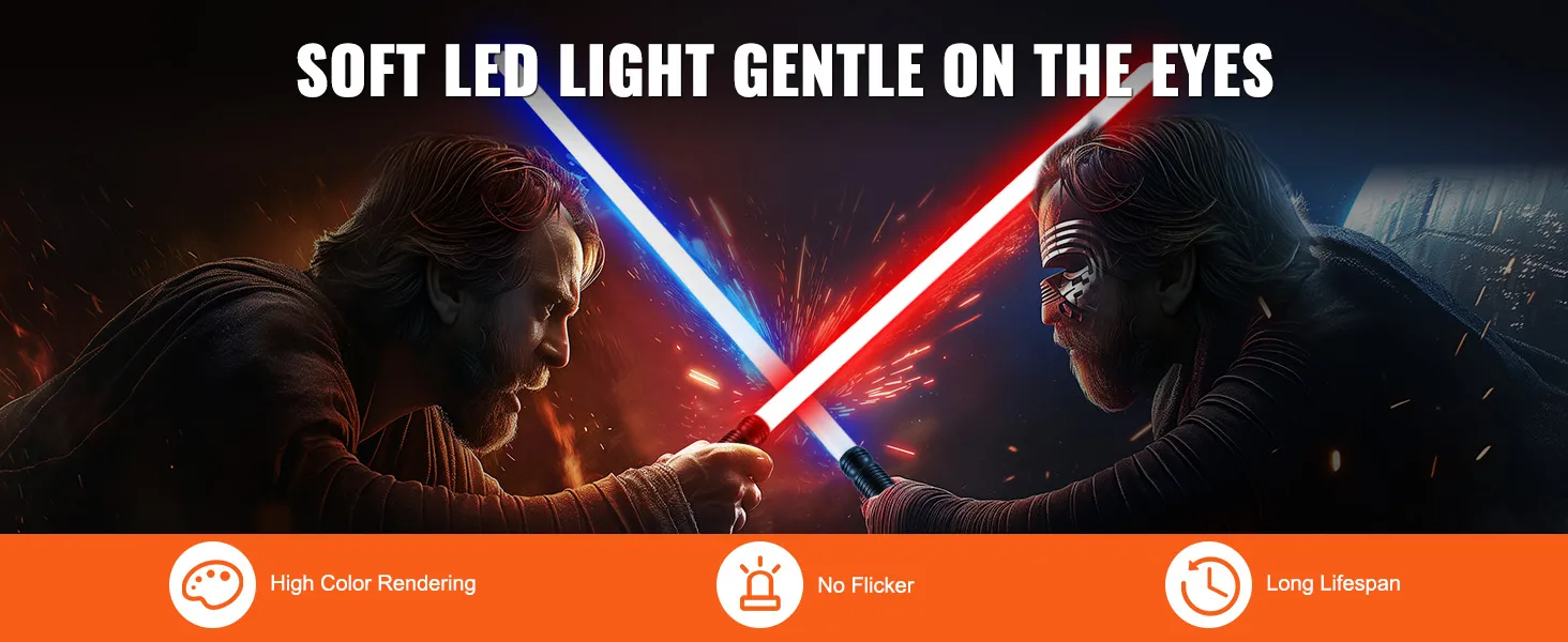 Equipped with LED lights, the real light up sword features soft and comfortable lighting that ensures no glare even when the light moves. It boasts high color rendition, no flickering issues, and long-lasting use.