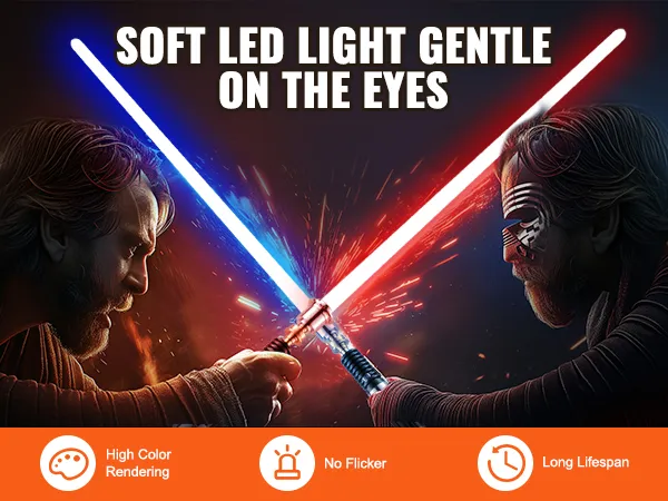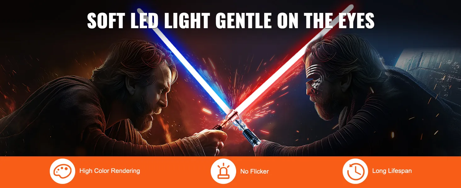 Het echte lichtzwaard met LED-verlichting zorgt voor zachte, aangename verlichting die zelfs bij beweging niet verblindt. Het wordt gekenmerkt door een hoge kleurweergave, geen flikkering en een lange levensduur.