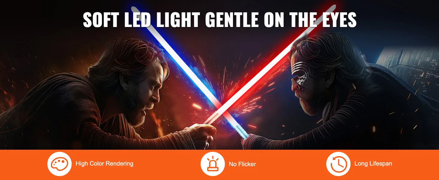 Equipped with LED lights, the real light up sword features soft and comfortable lighting that ensures no glare even when the light moves. It boasts high color rendition, no flickering issues, and long-lasting use.