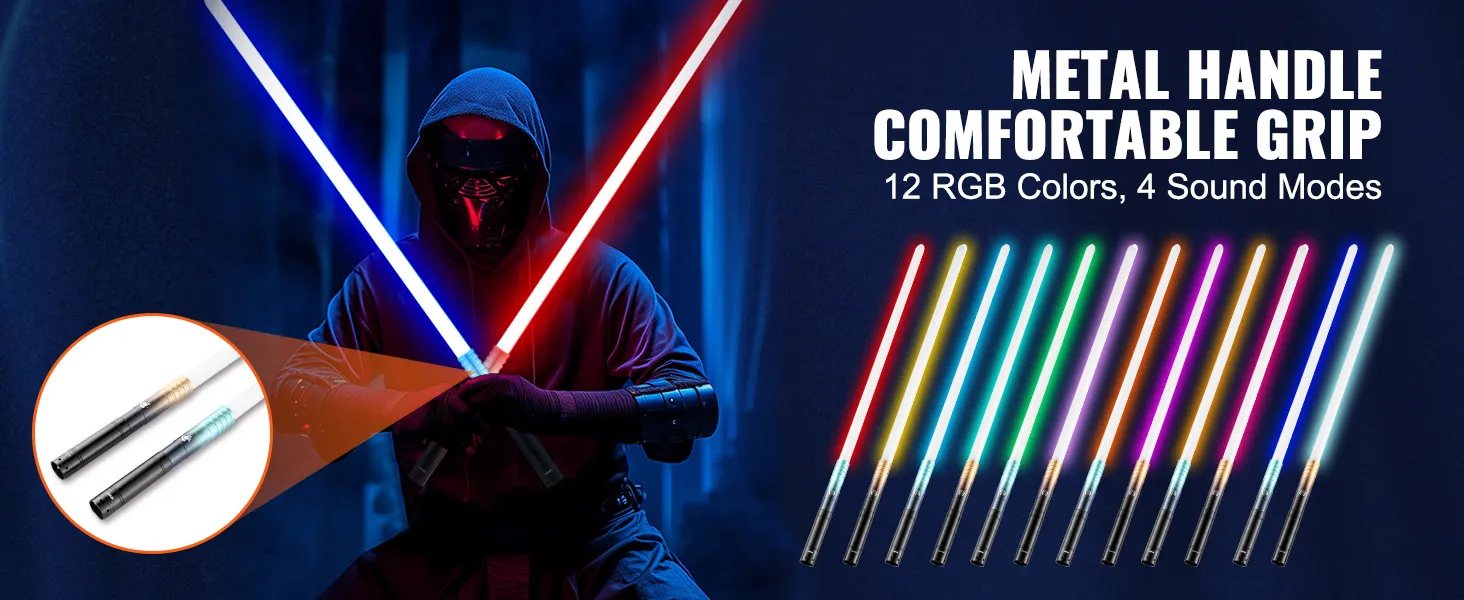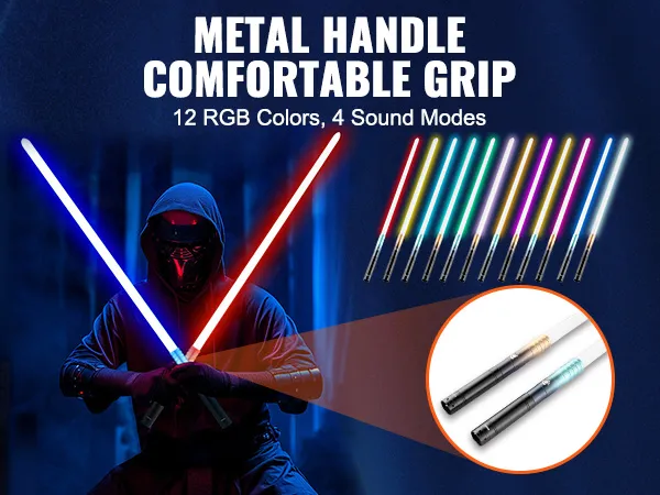 VEVOR Light Sword, 2 Pack Light up Sword with 12 RGB Colors, 4 Sound Modes and Realistic Handle, Rechargeable Sword Toy for Adults and Kids, Christmas Day, Halloween Cosplay, Birthday