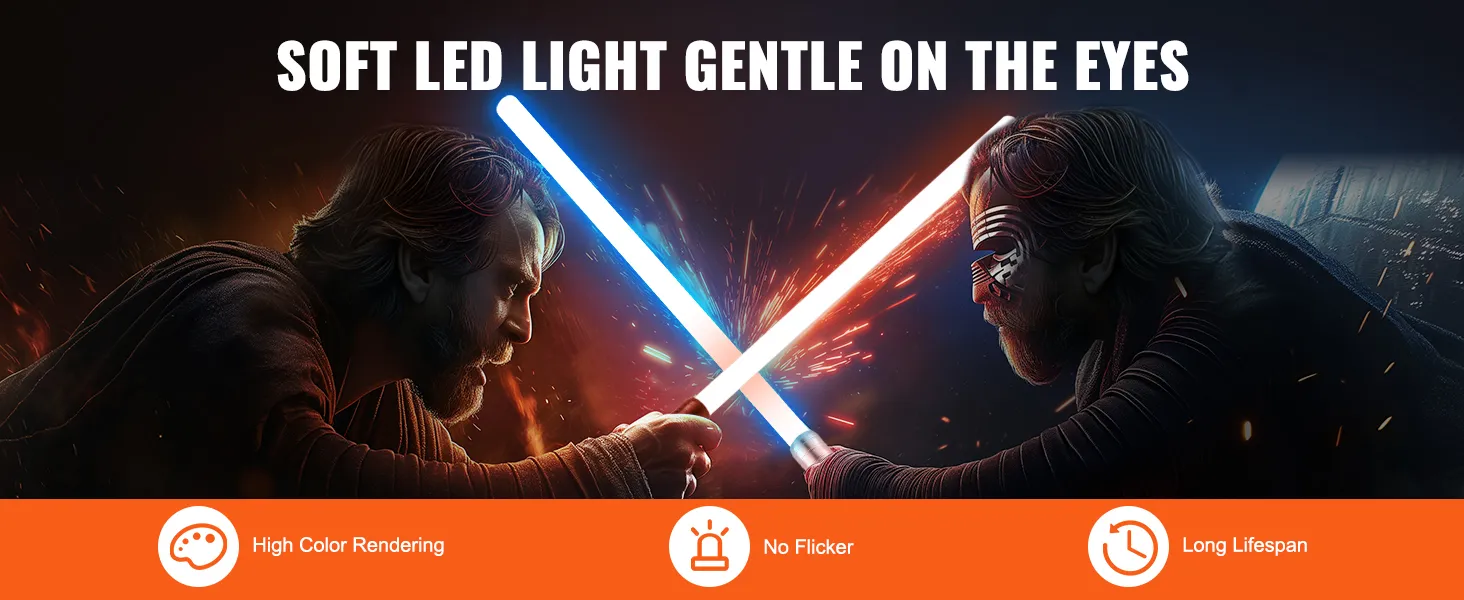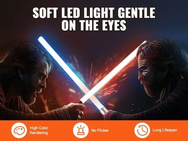 Het echte lichtzwaard met LED-verlichting zorgt voor zachte, aangename verlichting die zelfs bij beweging niet verblindt. Het wordt gekenmerkt door een hoge kleurweergave, geen flikkering en een lange levensduur.