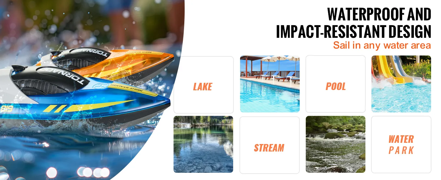 Versatile Sailing: From backyard pools to lively water parks and scenic lakes, this remote controlled boat is ready for any environment. Its waterproof and impact-resistant design ensures care-free fun, no matter where you're playing.