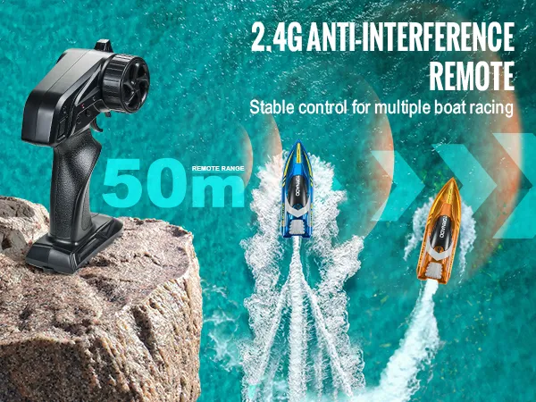 Long-Range Control: With 2.4G technology, the RC speed boat can be controlled from up to 164 ft/50 m away. It handles interference well and allows for multiple boat races. Plus, the remote has a range alert to let you know if the boat goes out of range, keeping playtime safe.