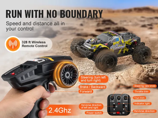 Stepless Speed Gear: From low-speed creeping to high-speed racing (up to 45 km/h), the stepless speed regulation on this 4wd off-road RC car is perfect for every child, from beginners to experienced racers. They can choose suitable speed as they please for an either secure or thrilling race.