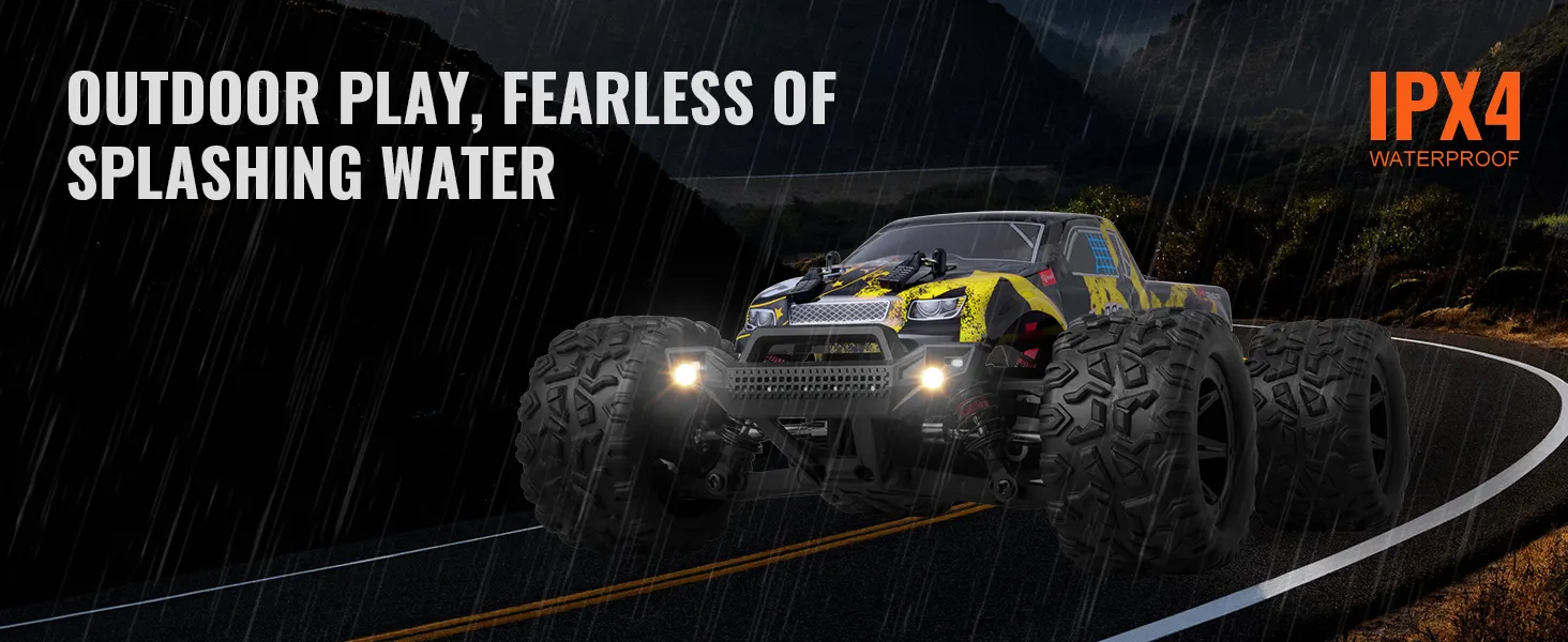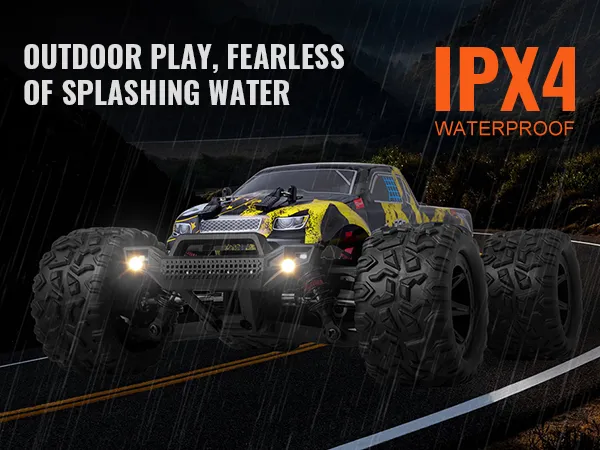 No worries about rainy days or muddy place, with the IPX4 waterproof feature, our remote control monster truck will sure to take your fun for outdoor exploration to the next level.