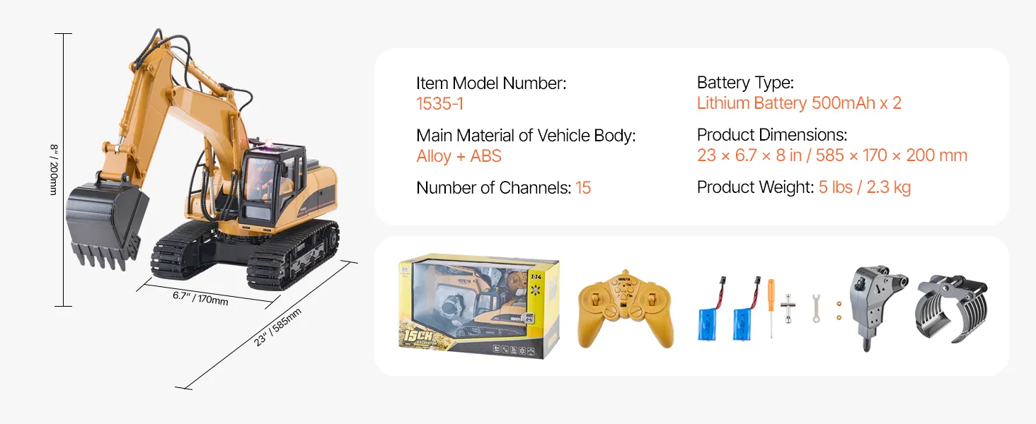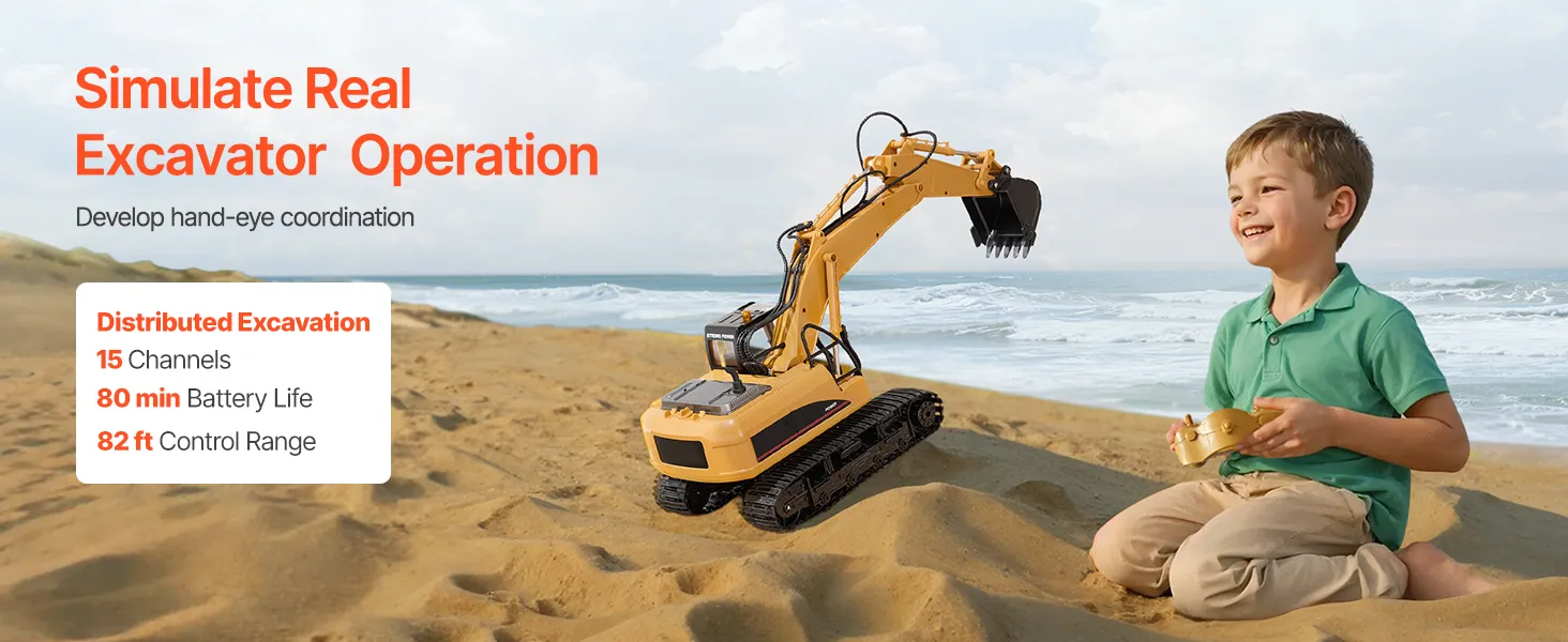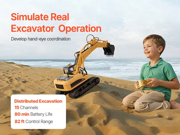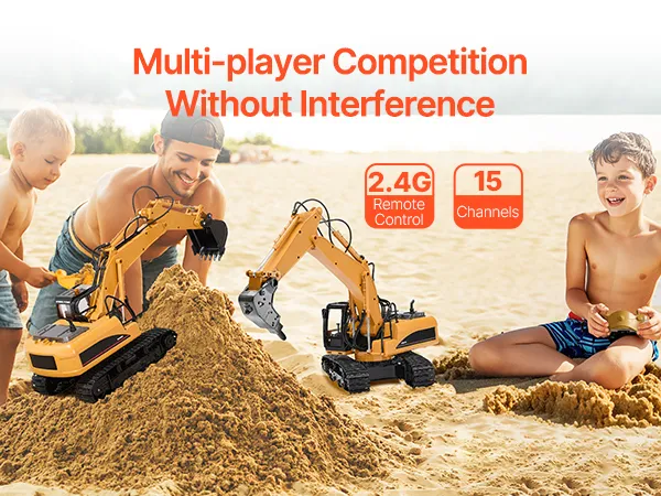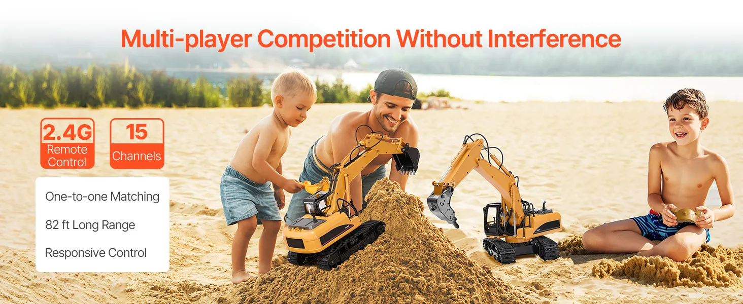 Remote Control: Equipped with a 2.4GHz anti-interference high-frequency remote, the remote control excavator toy can be operated up to 82 feet away, and multiple players can enjoy without interference.