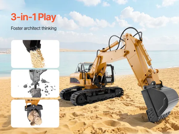 Immersive Experience: The remote control digger excavator arm is equipped with 3 independent motors for precise control over the large arm, small arm, and bucket to dig sand, gravel, and more, providing a closer-to-life excavation experience.