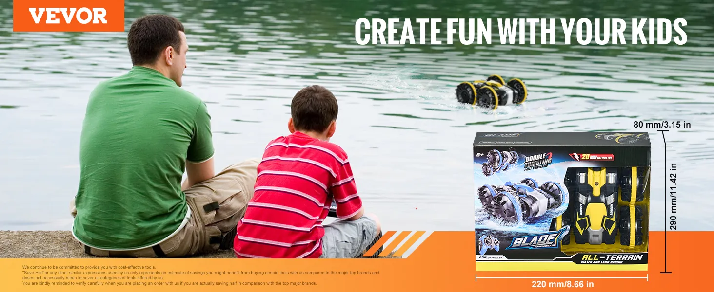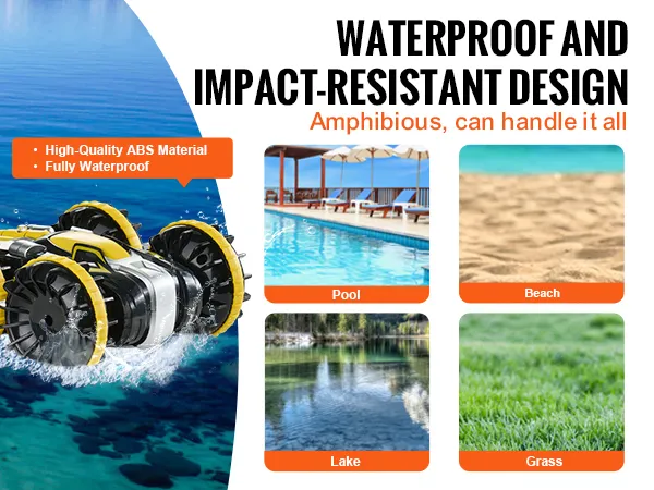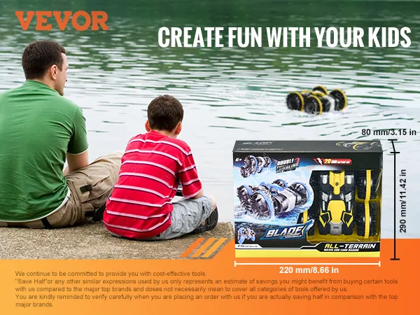 Avontuur op elk terrein: deze amfibieauto is gemaakt van duurzaam ABS-materiaal en kan tegen stoten en wild spel. Dankzij het waterdichte ontwerp kan hij gemakkelijk door zand, meren, plassen en gras navigeren, waardoor elk avontuur spannend en obstakelvrij wordt.